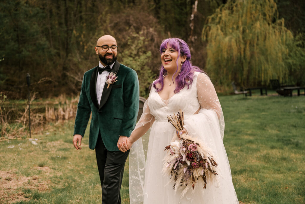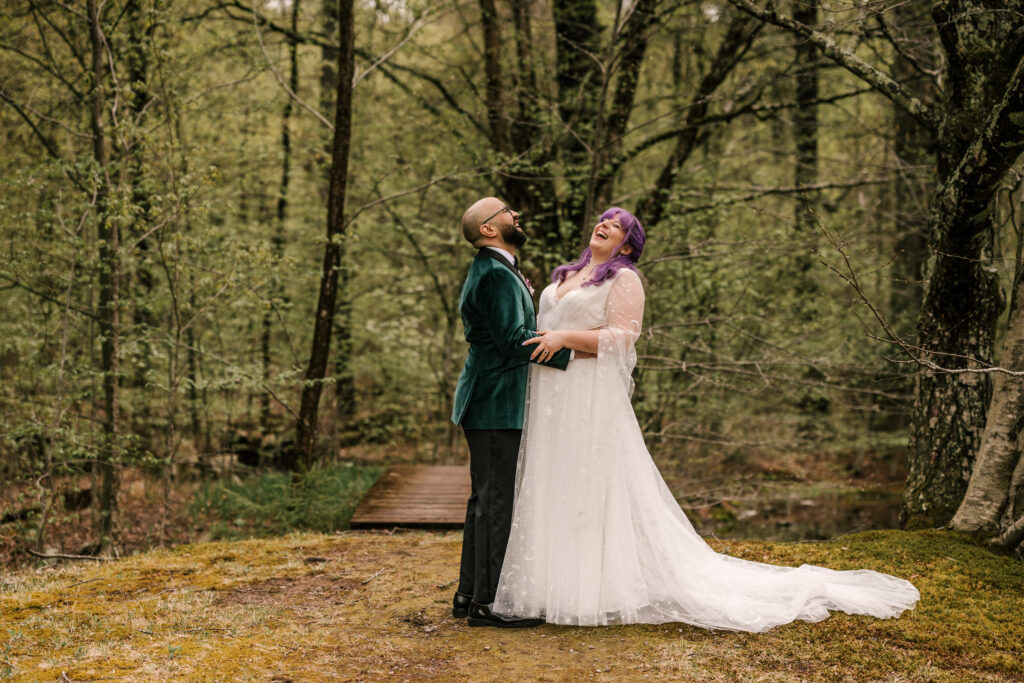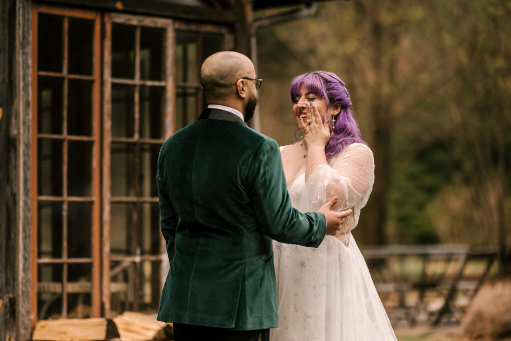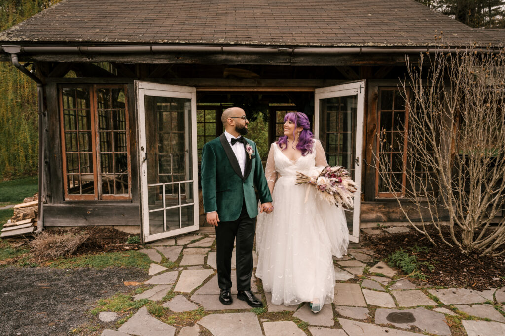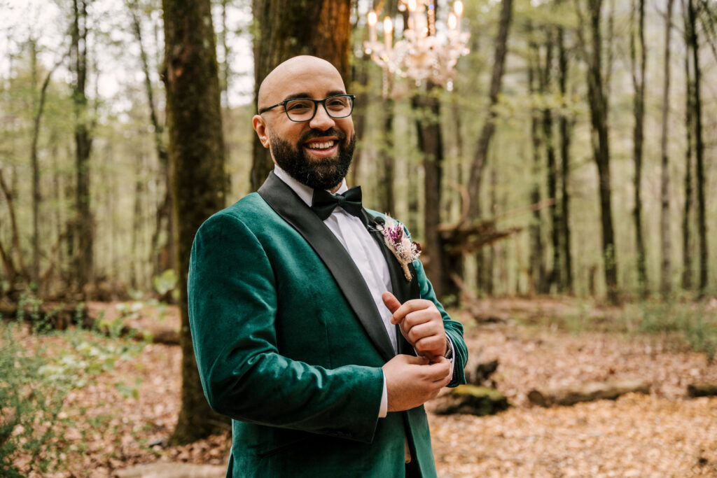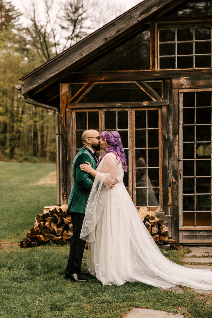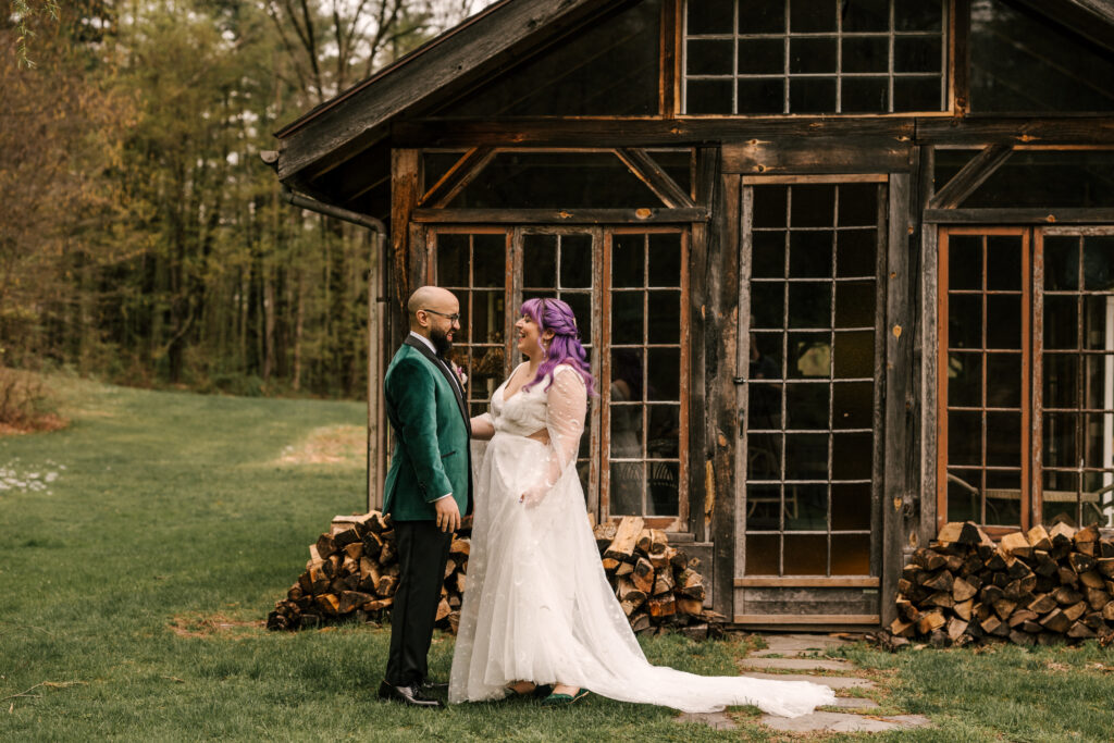 Katie and Jorge’s April wedding at Foxfire Mountain House in the Catskills of New York was intimate, intentional, and filled with love. It was a perfectly overcast day with some spring showers right before the ceremony began. The whole venue was picturesque, complete with endless acres of greenery, a stunning glass house and woodland magic.