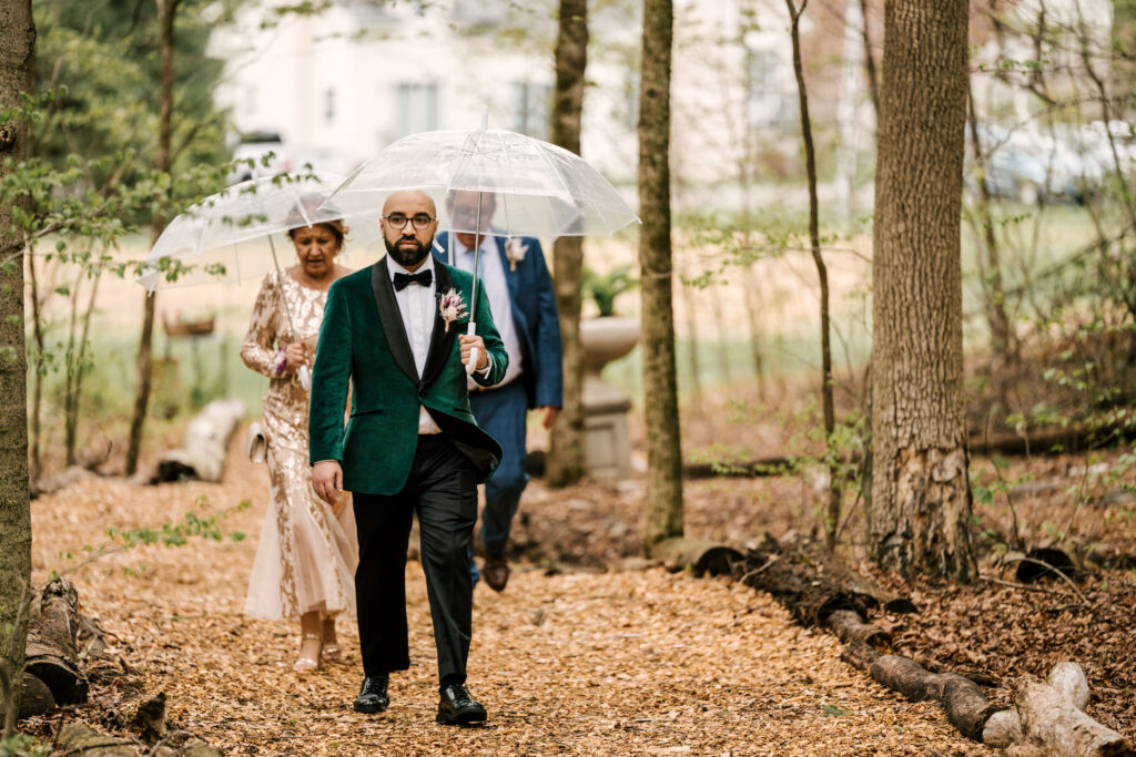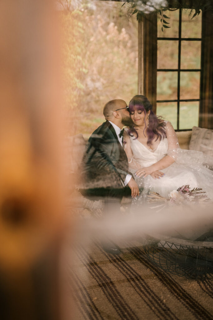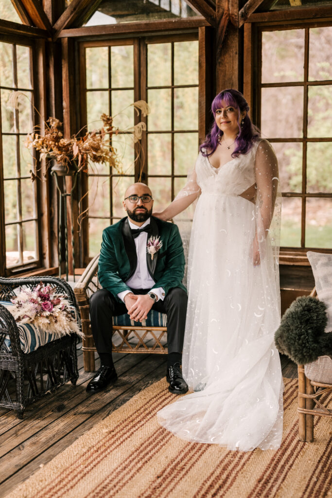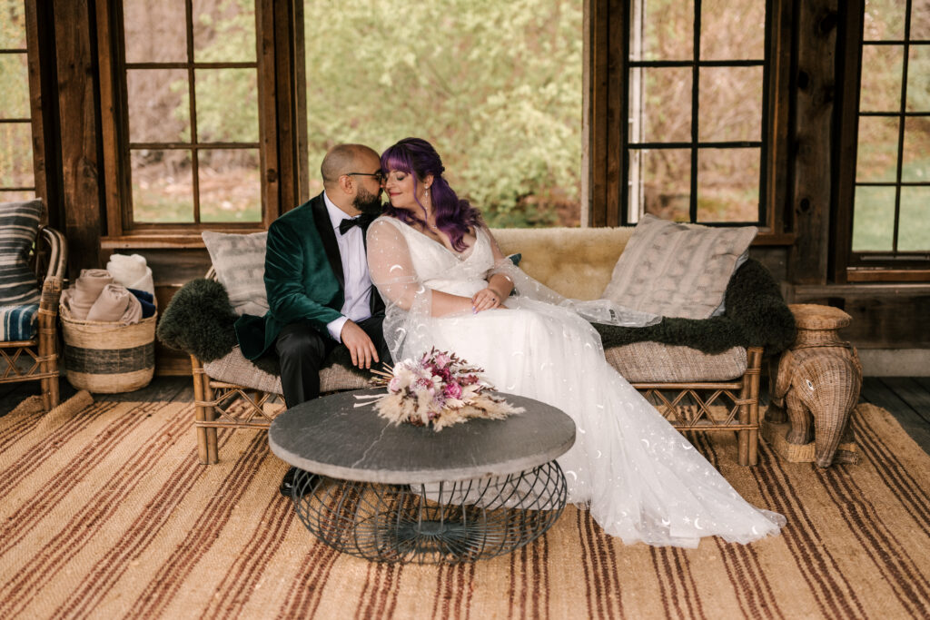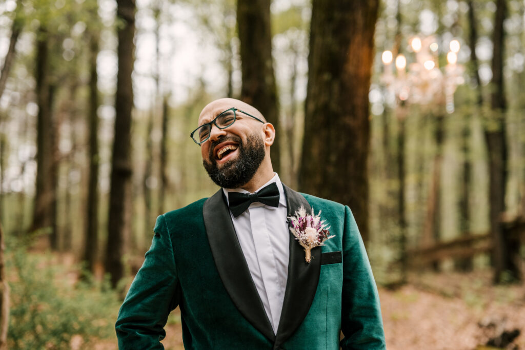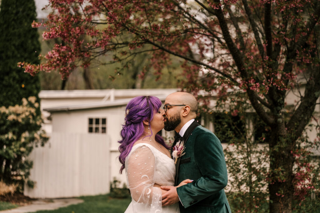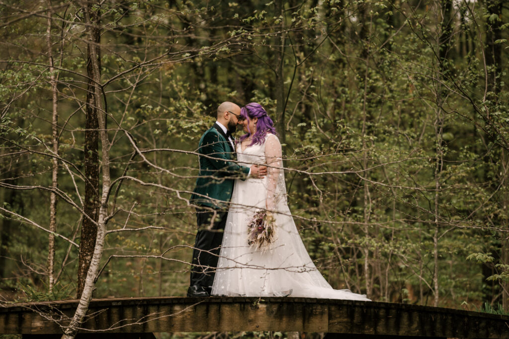 Katie and Jorge’s April wedding at Foxfire Mountain House in the Catskills of New York was intimate, intentional, and filled with love. It was a perfectly overcast day with some spring showers right before the ceremony began. The whole venue was picturesque, complete with endless acres of greenery, a stunning glass house and woodland magic.