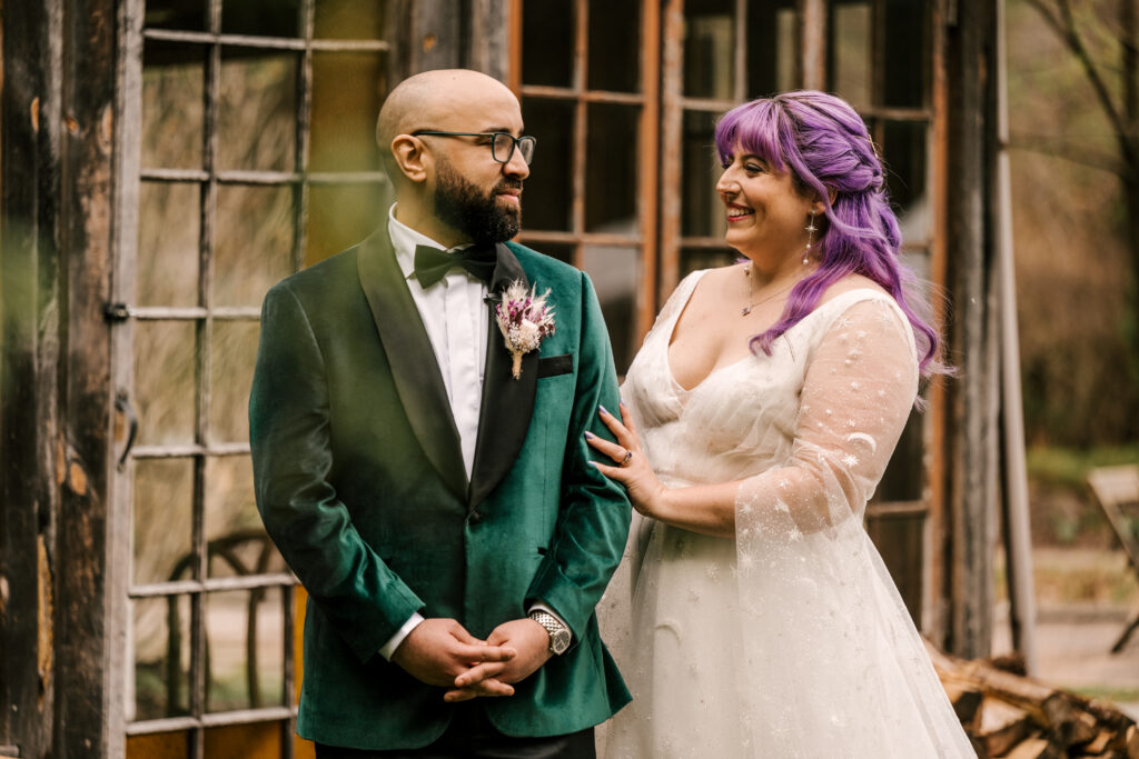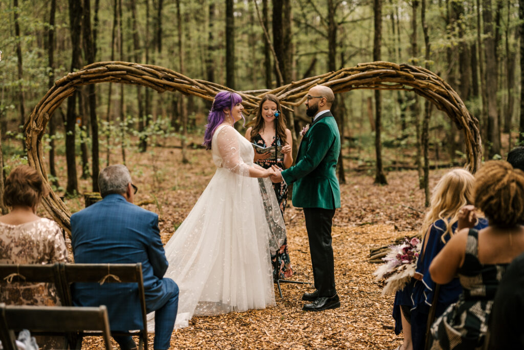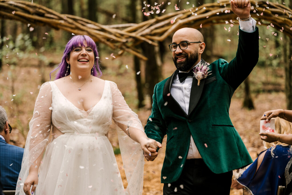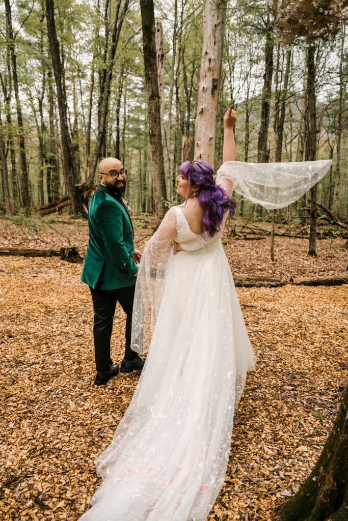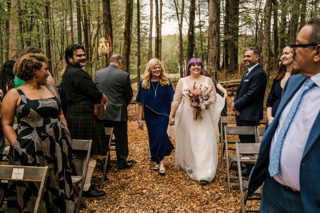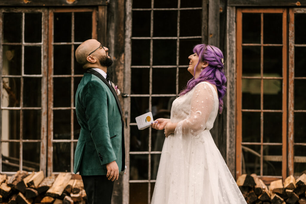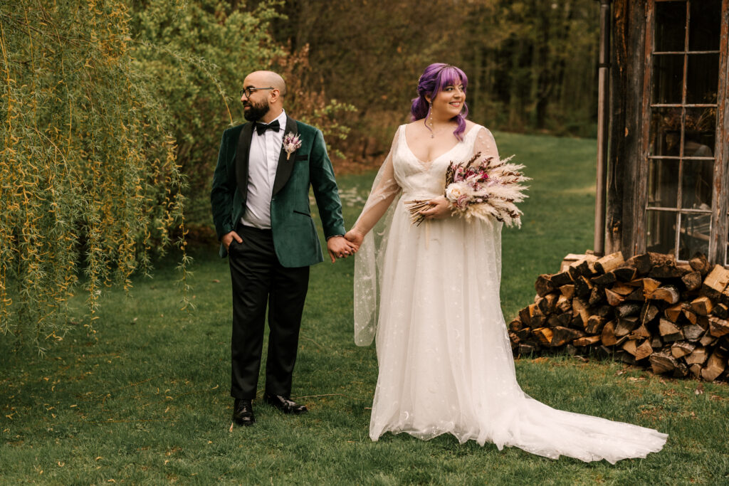 Katie and Jorge’s April wedding at Foxfire Mountain House in the Catskills of New York was intimate, intentional, and filled with love. It was a perfectly overcast day with some spring showers right before the ceremony began. The whole venue was picturesque, complete with endless acres of greenery, a stunning glass house and woodland magic.