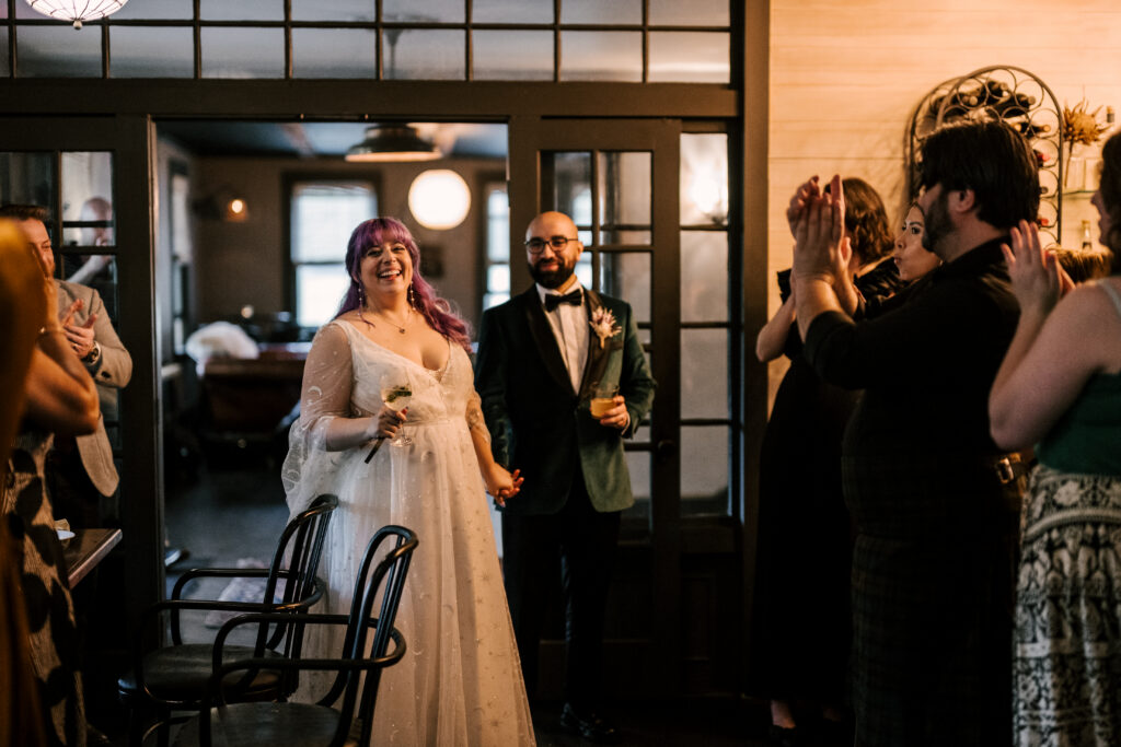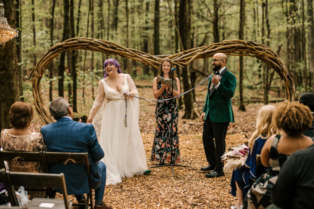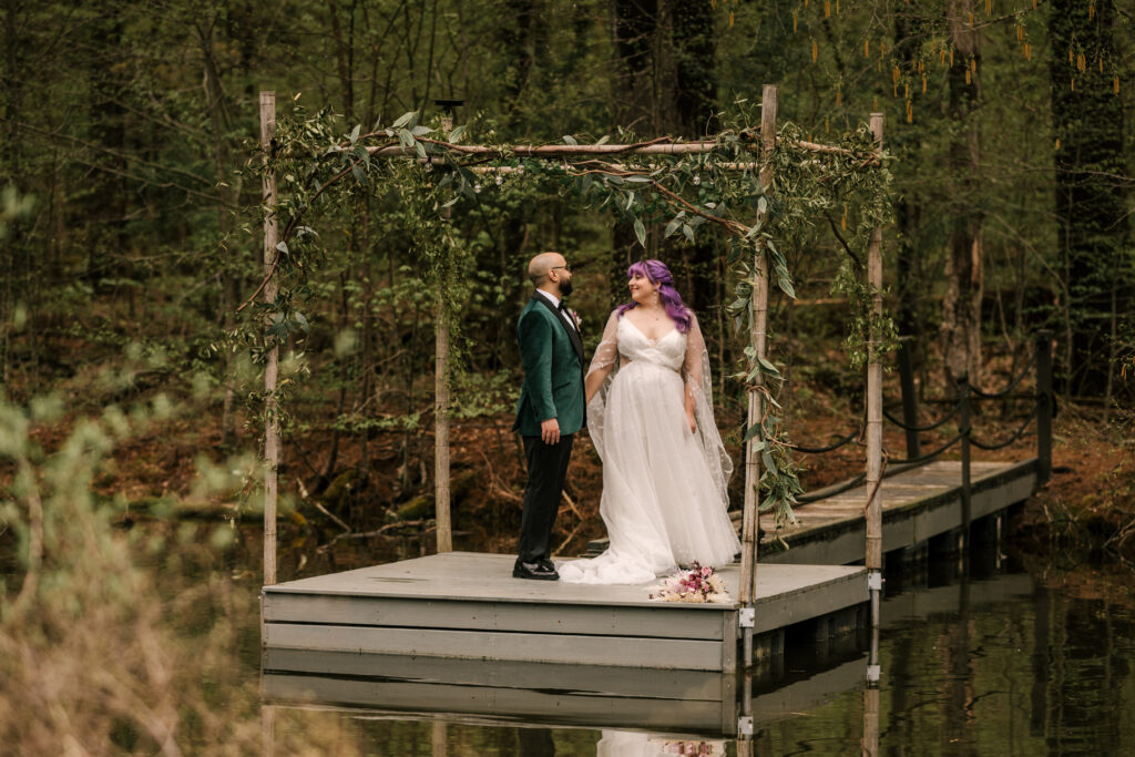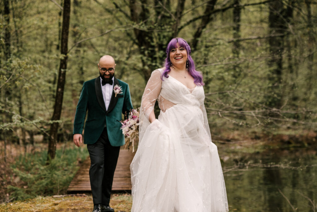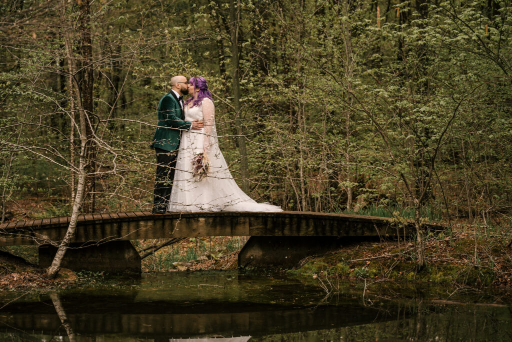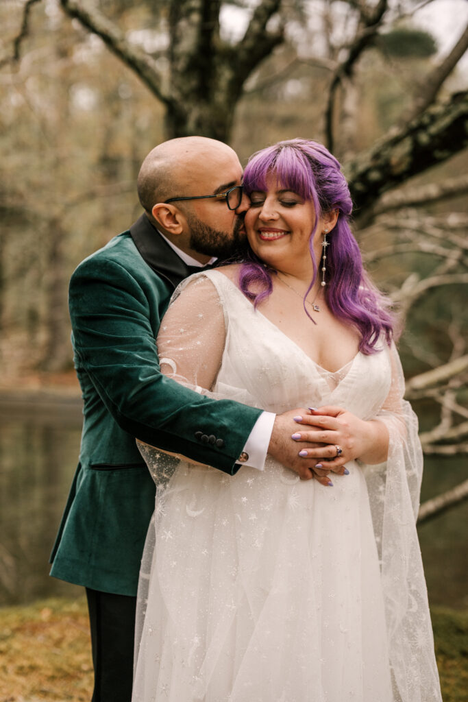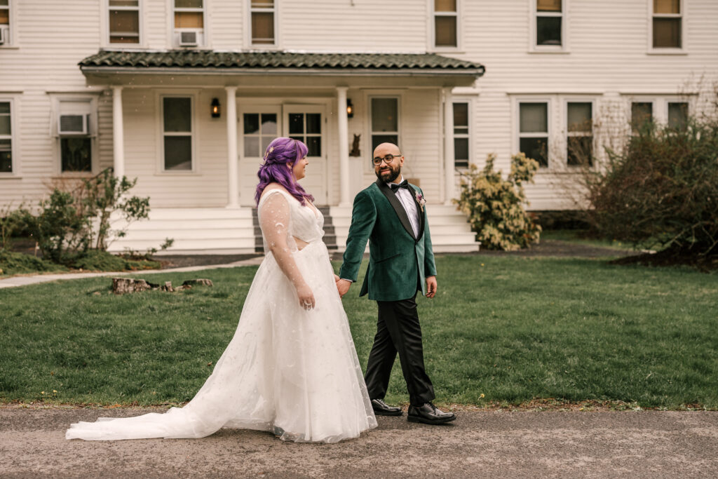 Katie and Jorge’s April wedding at Foxfire Mountain House in the Catskills of New York was intimate, intentional, and filled with love. It was a perfectly overcast day with some spring showers right before the ceremony began. The whole venue was picturesque, complete with endless acres of greenery, a stunning glass house and woodland magic.